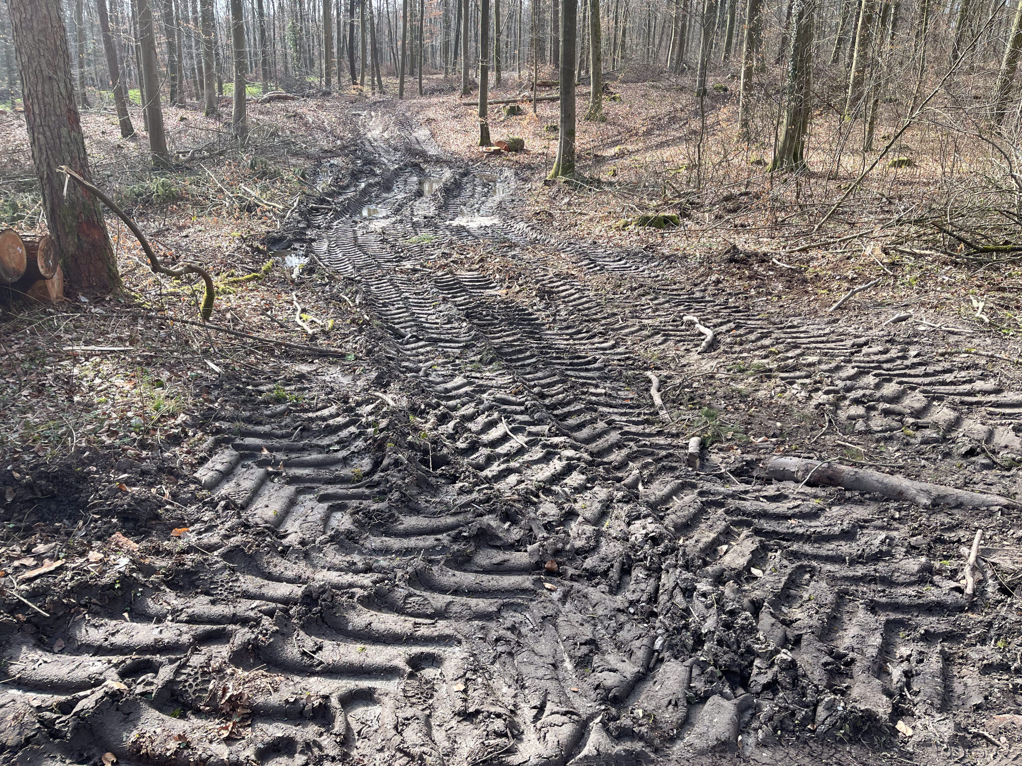 - Die Rückegassen sind teilweise wieder zu dicht und sehr breit angelegt. Von der versprochenen Stilllegung von Rückegassen in übererschlossenen Abschnitten können wir nichts erkennen.